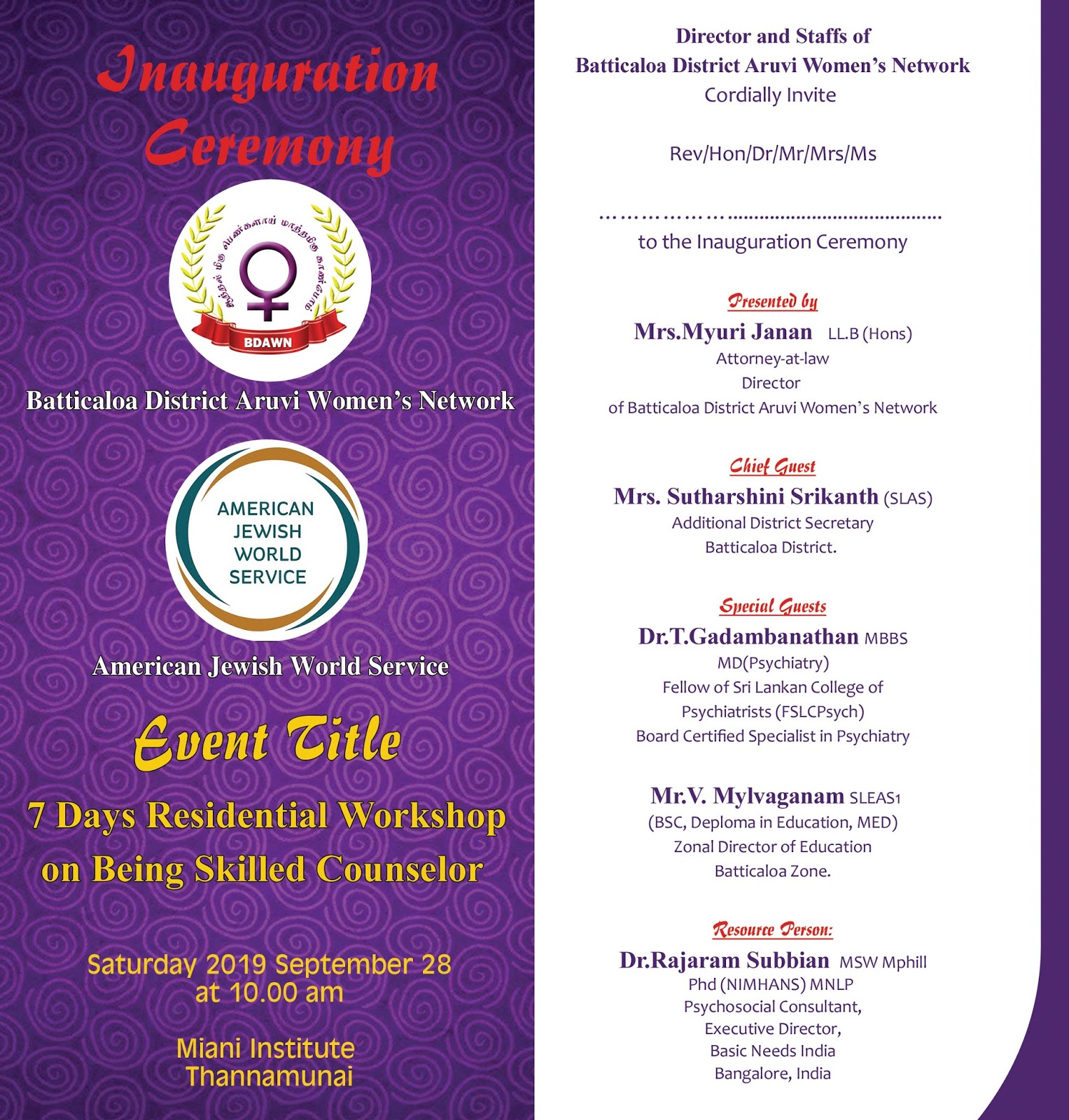 அமெரிக்க உலக யூத சேவைகள் நிறுவனத்தின் நிதி, ஆலோசனை, வழிகாட்டலில் இடம்பெறும் இப்பயிற்சி நெறி சனிக்கிழமை 28.09.2019 தன்னாமுனை மியானி பயிற்சிக் கூடத்தில் ஆரம்பித்து வைக்கப்பட்டது.
