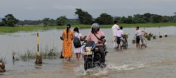 வீதியை ஊடறுத்துப்பாயும் வெள்ளம்.
